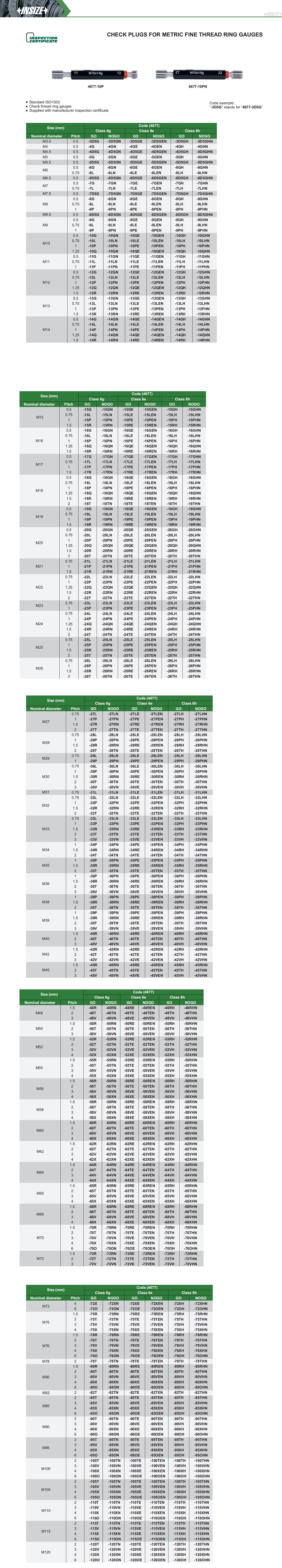 Check Plugs For Metric Fine Thread Ring Gauges